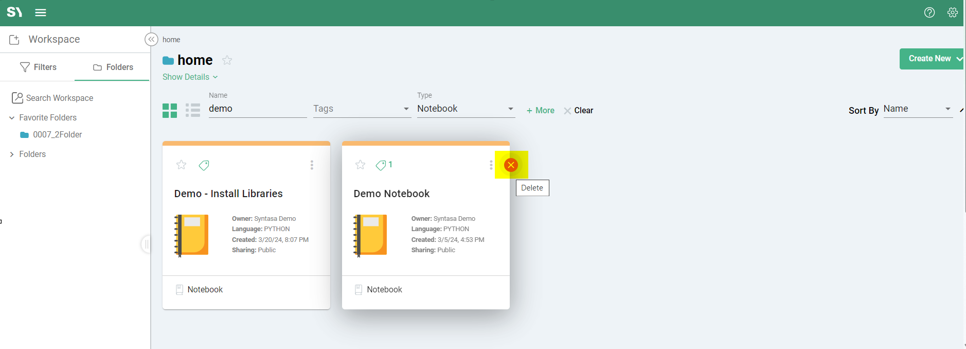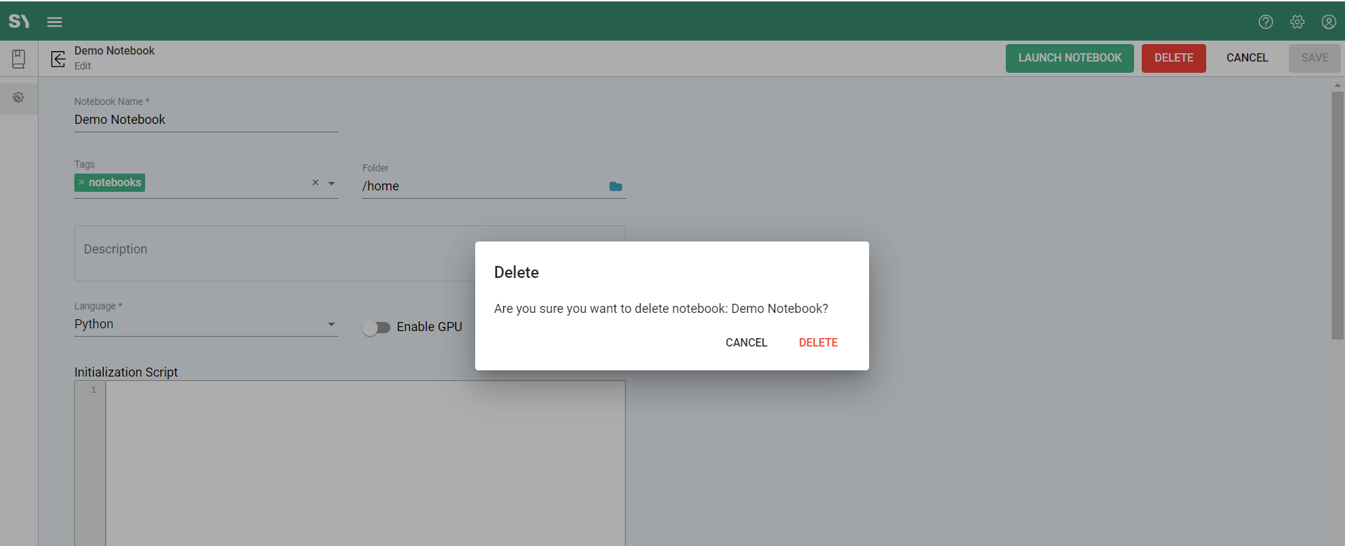 When you click the 'Delete' icon or button on any screen, a confirmation message will appear, offering you the option to either proceed with deleting the notebook or cancel the action. If you choose to proceed and click 'Delete', the notebook will be permanently deleted and removed from the list or card view.