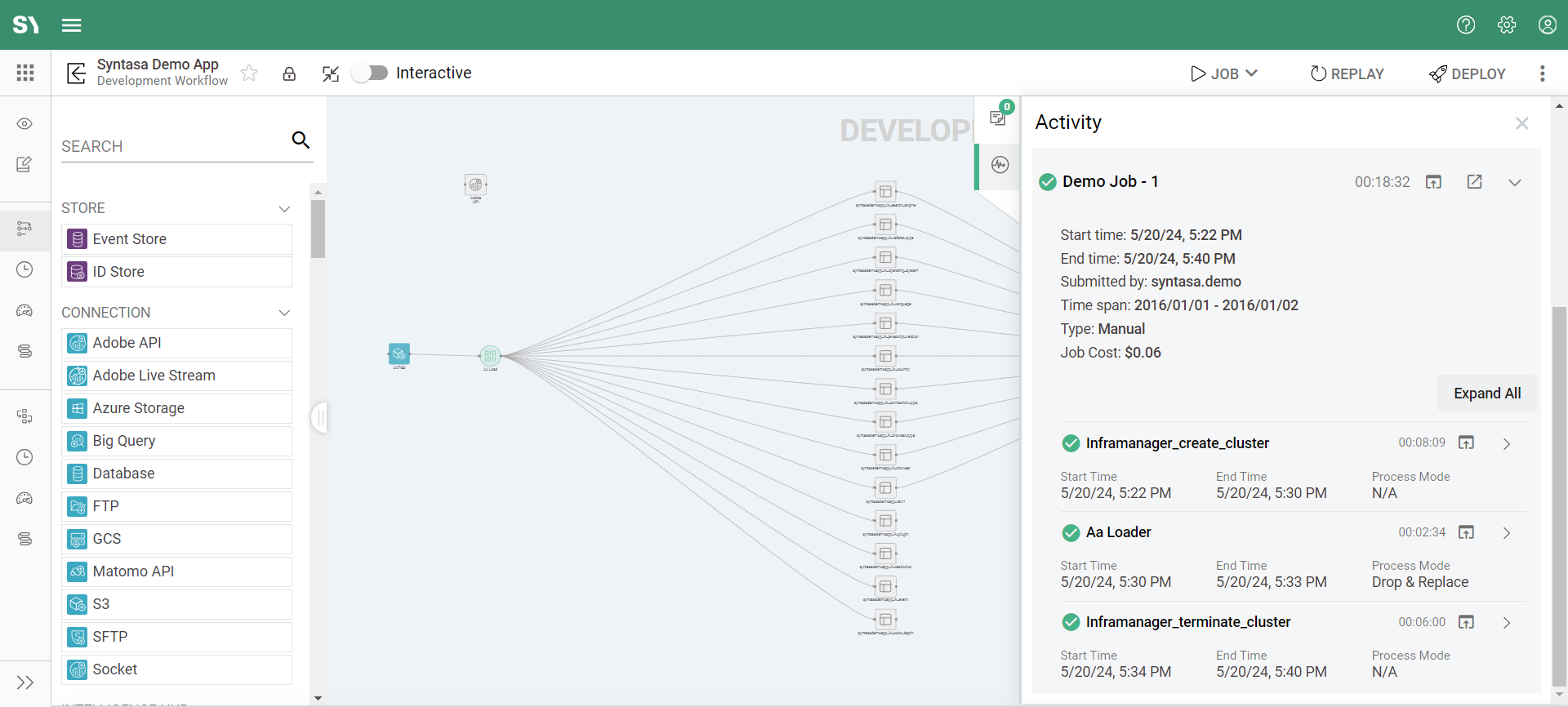 - We can expand each step to see its details. Generally, you will see 'Inframanager_create_cluster' as a first step when the cluster is not running. It creates the cluster and allocates the resources according to the runtime template selected. As the last step, you can see 'inframanager_terminate_cluster' if the runtime template has been configured to terminate after each job execution.