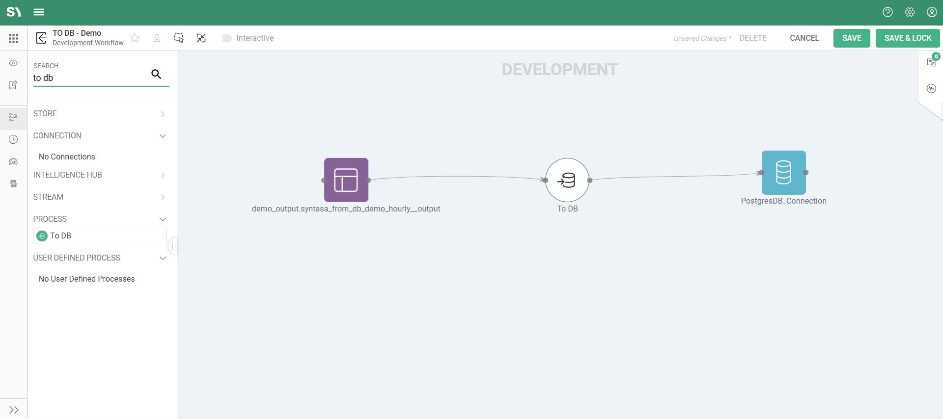 Click the TO DB node to begin configuring it.