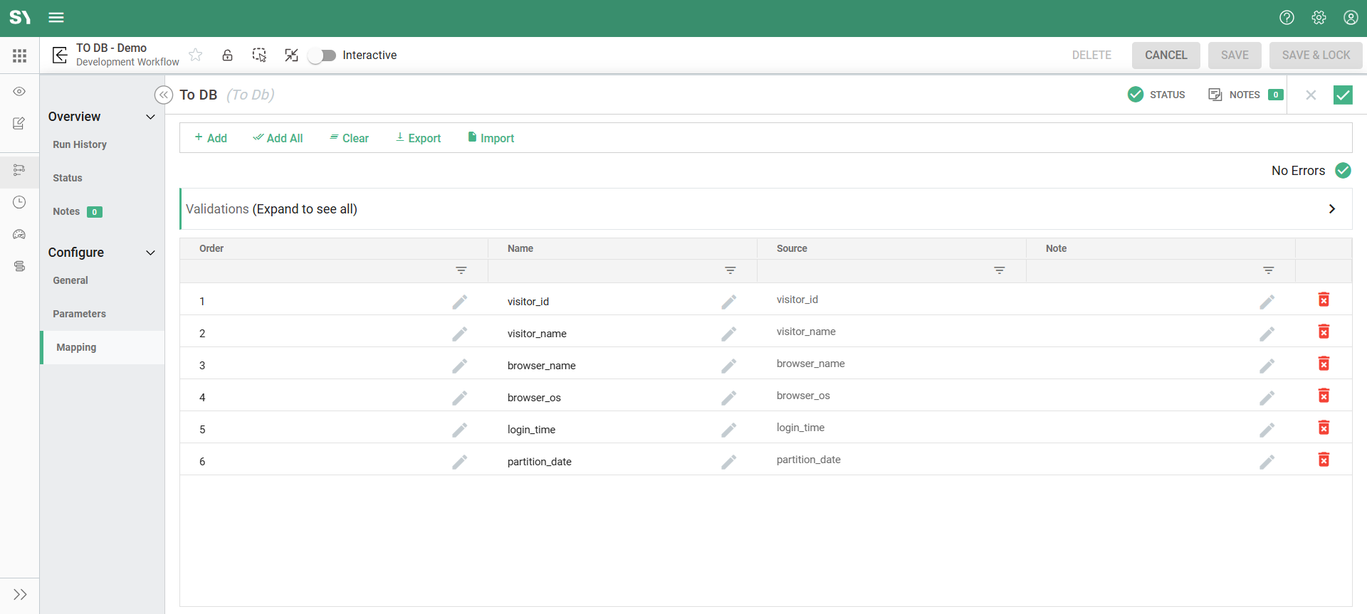 Your data pipeline is now fully configured and ready for execution. In the next step, you’ll run the job and review the exported data in the configured database.