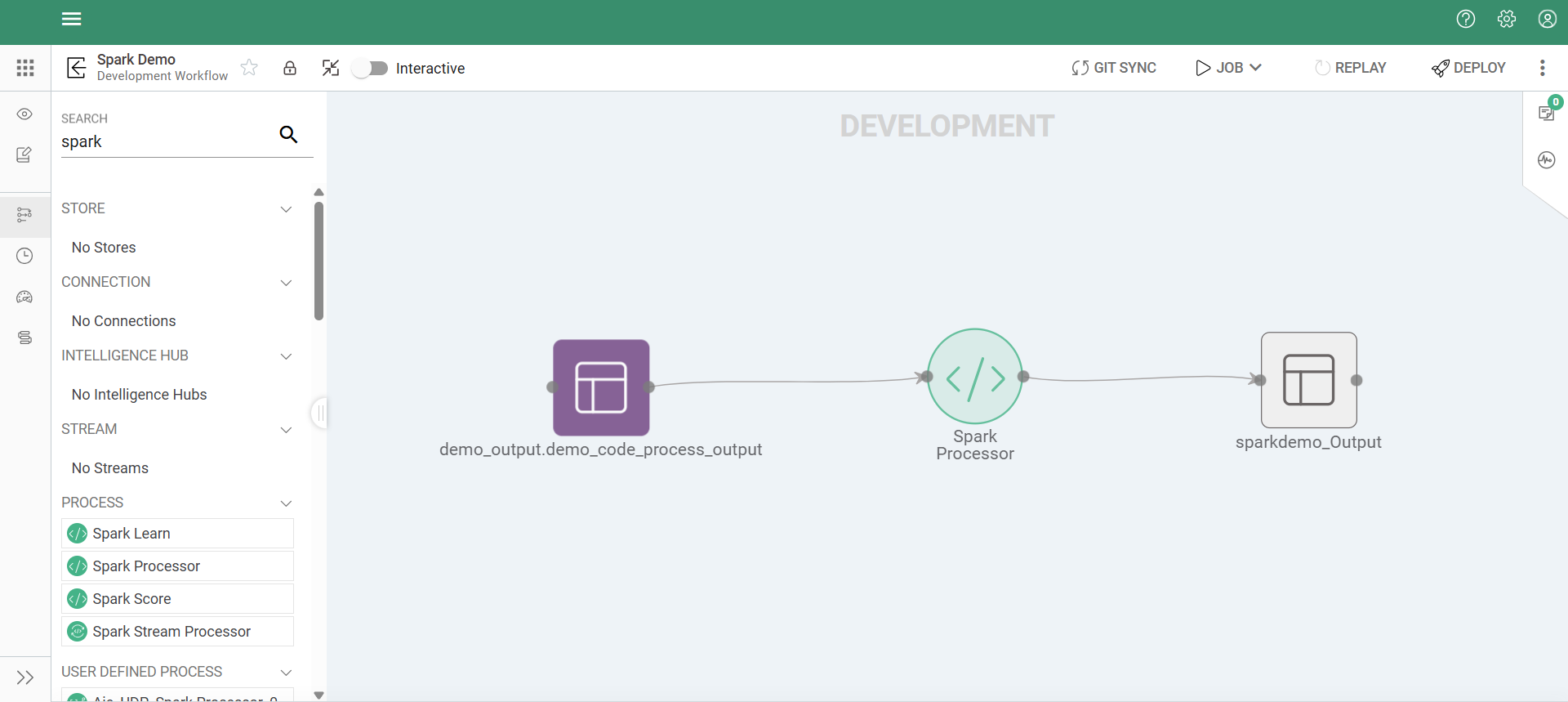 The typical data pipeline for Spark Processor in Syntasa app looks like this: